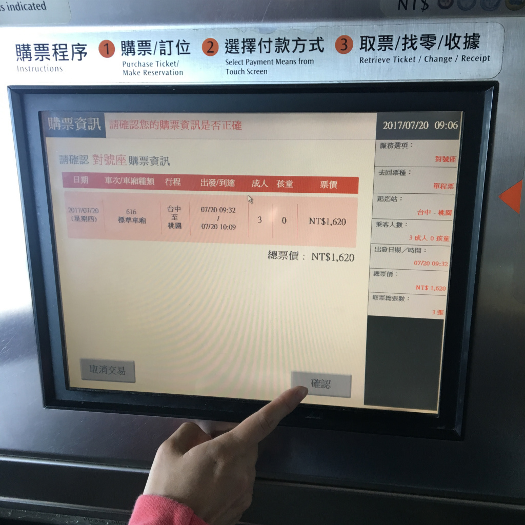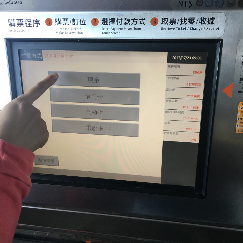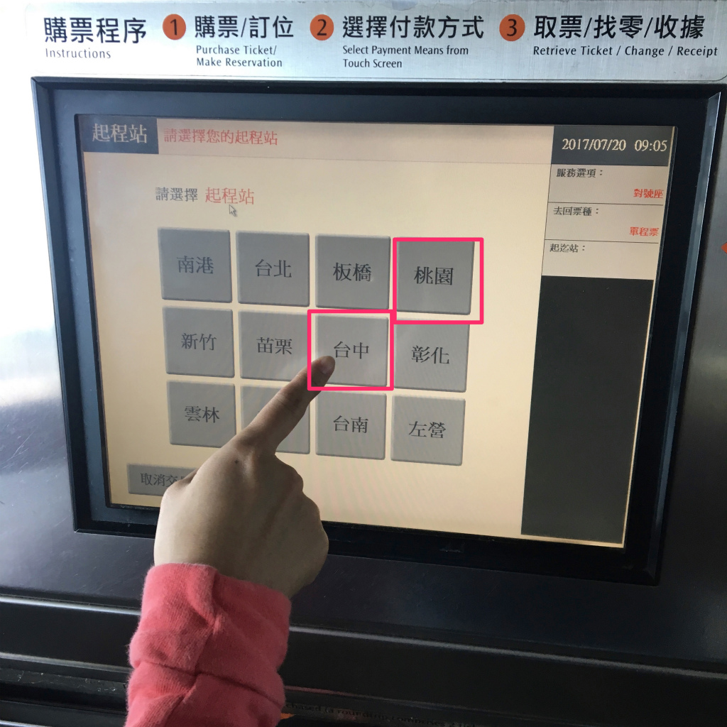 自販機で台湾新幹線(台灣高鐵)のチケットの購入方法