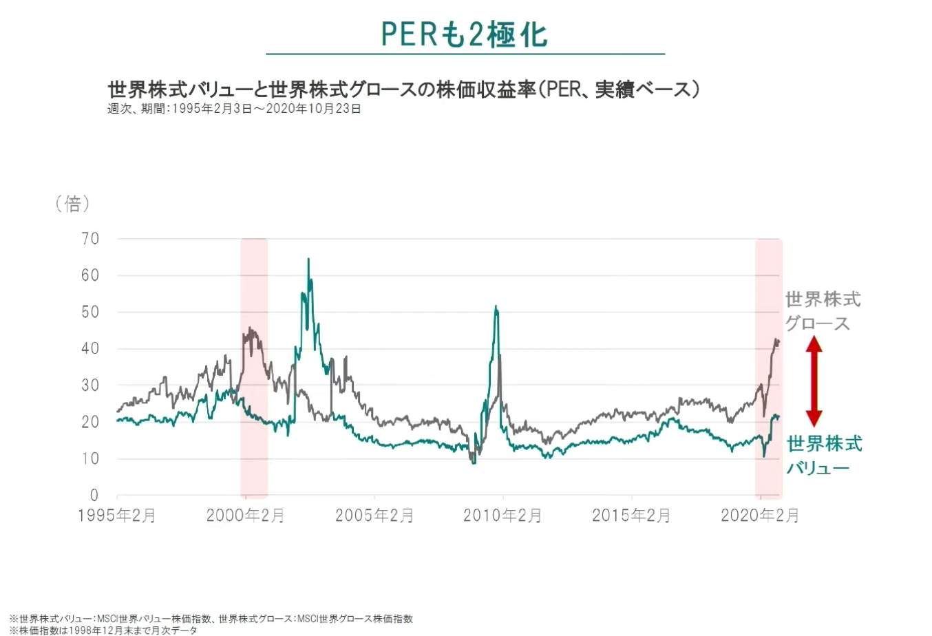 一部のIT企業に代表されるグロース株に比べてバリュー株が長く安値に放置をされているのです。