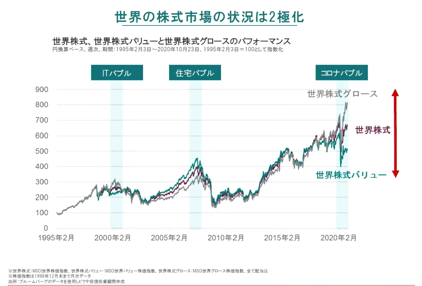 この10年ほとんど見向きもされていなかったバリュー株や新興国株が魅力的な水準になっているのではと思っています。