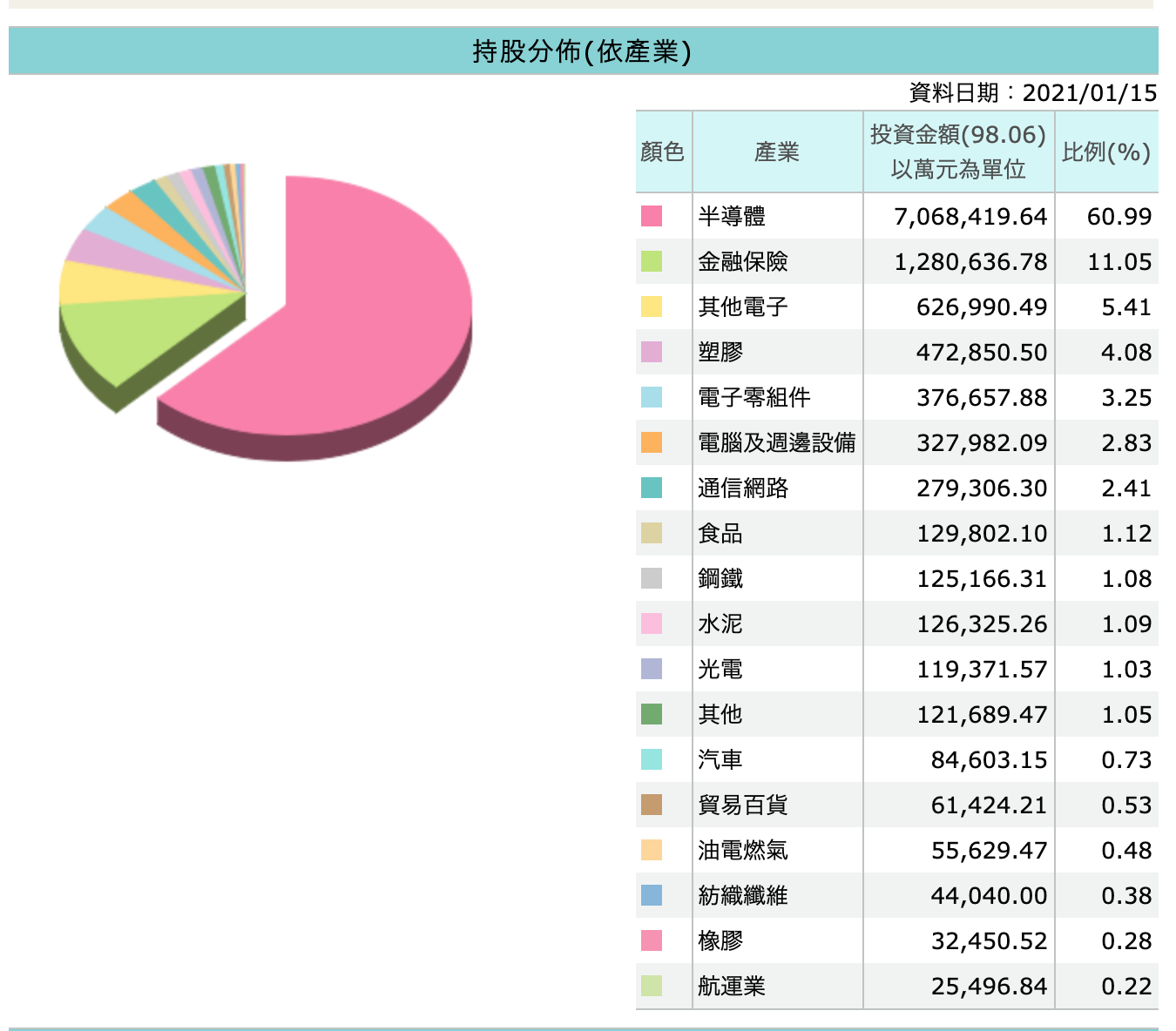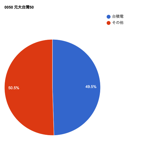 台積電の比率が49.2%となっています。このデータは12月31日のもので、一ヶ月ごとに更新されるので一月のデータでは50%超えている可能性があります。
