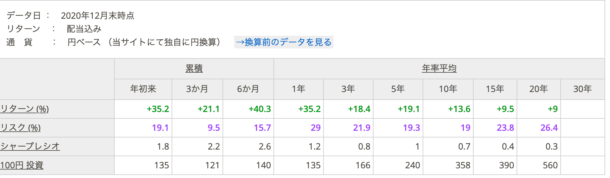 過去20年のリターンは米国S&Pより2%も上回っています。