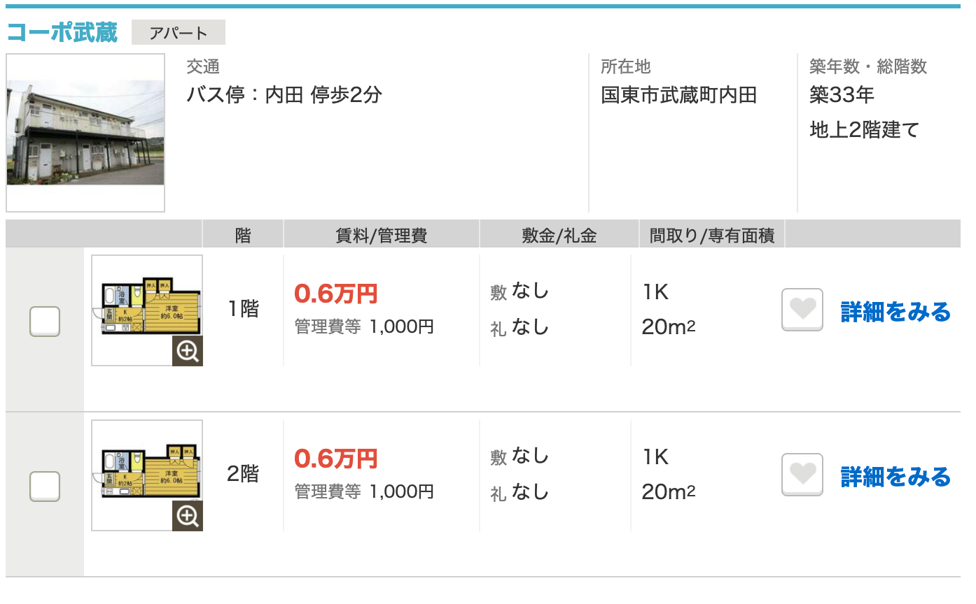 あれから4年近く経っていますが、2021年1月現在でも1万円以下の格安物件が多数存在しています。