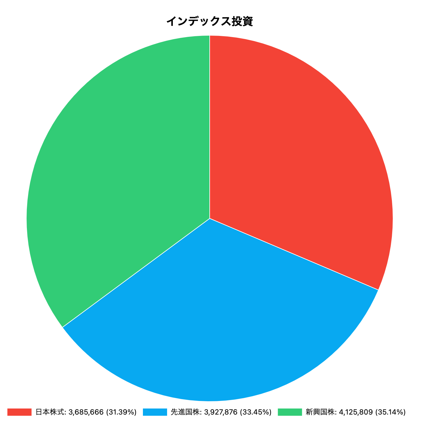 日本株・先進国株・新興国株が三分の一ずつになるように投資をしていきます。