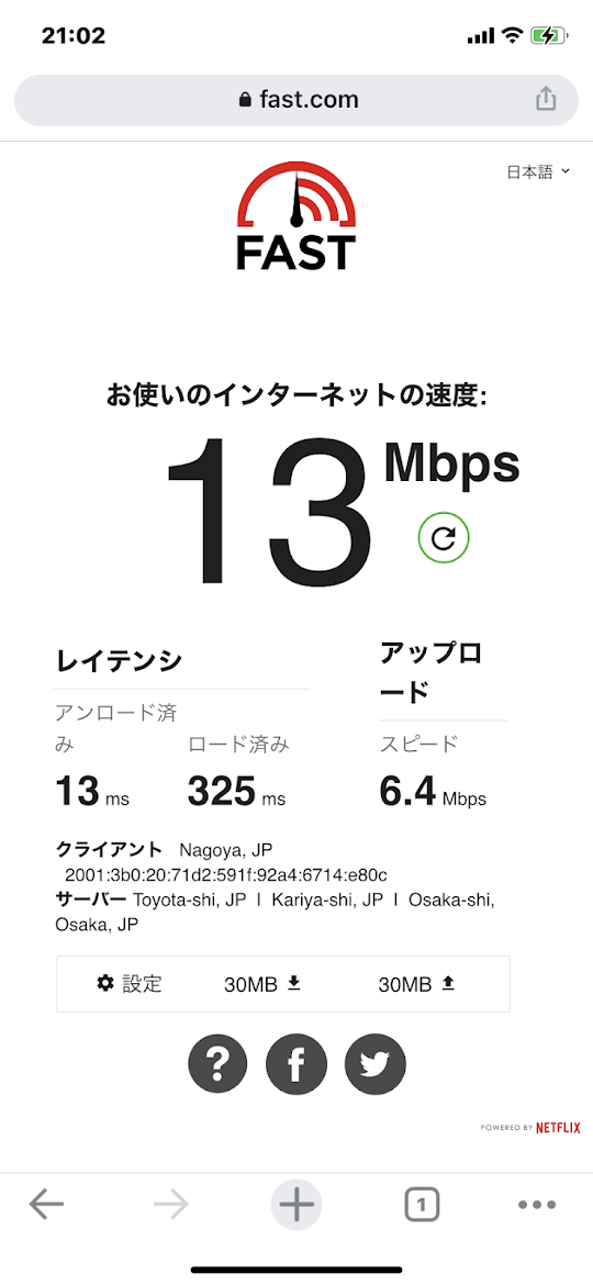 しかし期待していなかったネット速度が予想以上に良かったことは驚いています。
