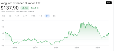 EDV・米国超長期債ETFのチャート