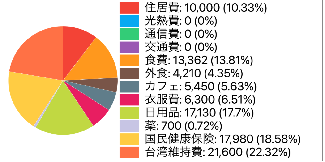 保険料と台湾の家賃は含んで85,000円ほどなのでこの二つがないと46,252円となります。