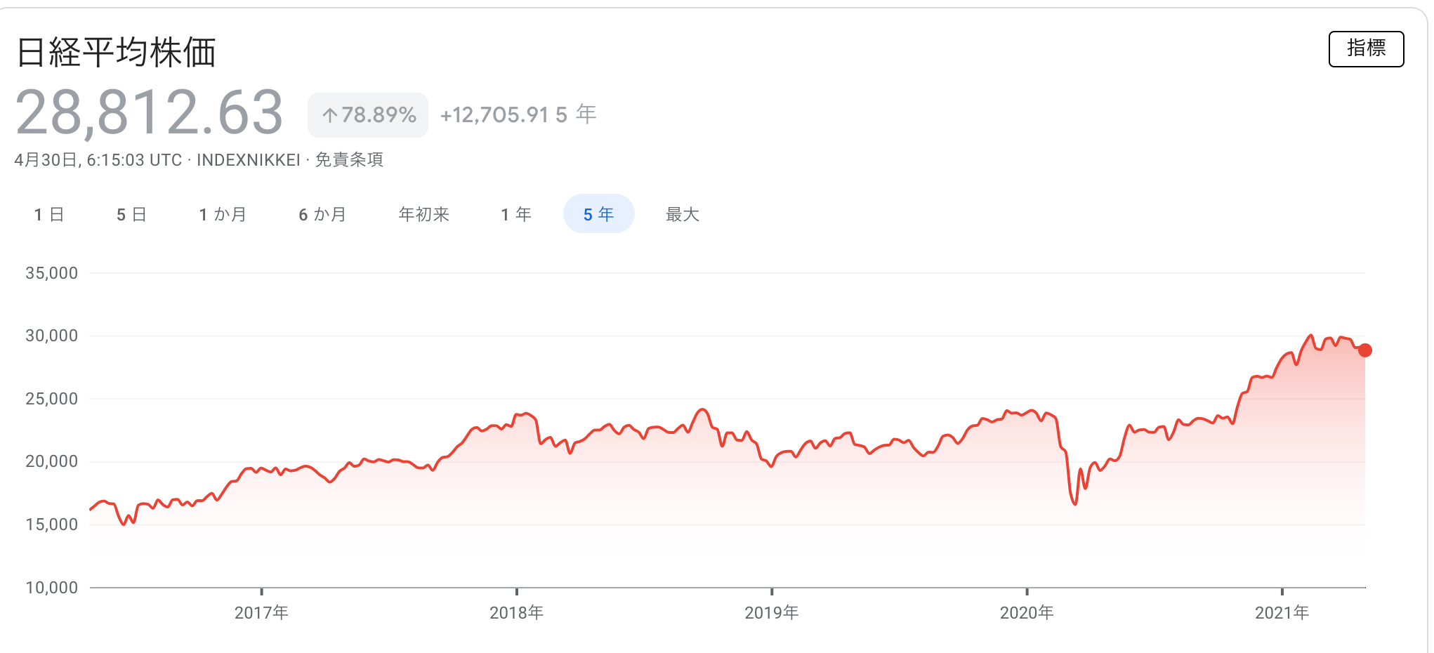 | 日経225 | 28,812円 | 1,411 | 20.42倍 | 1.69% | 4.90% | 0.090% |