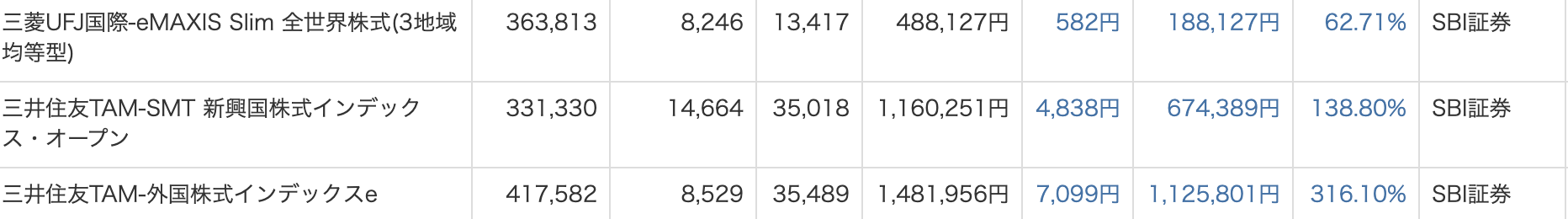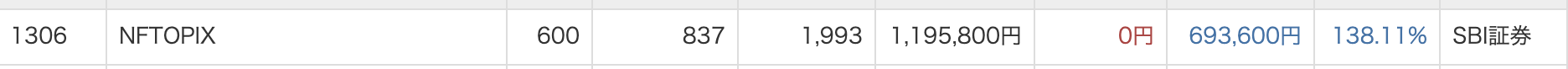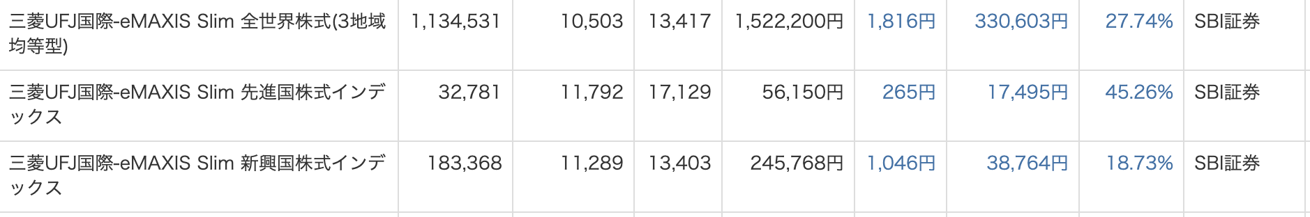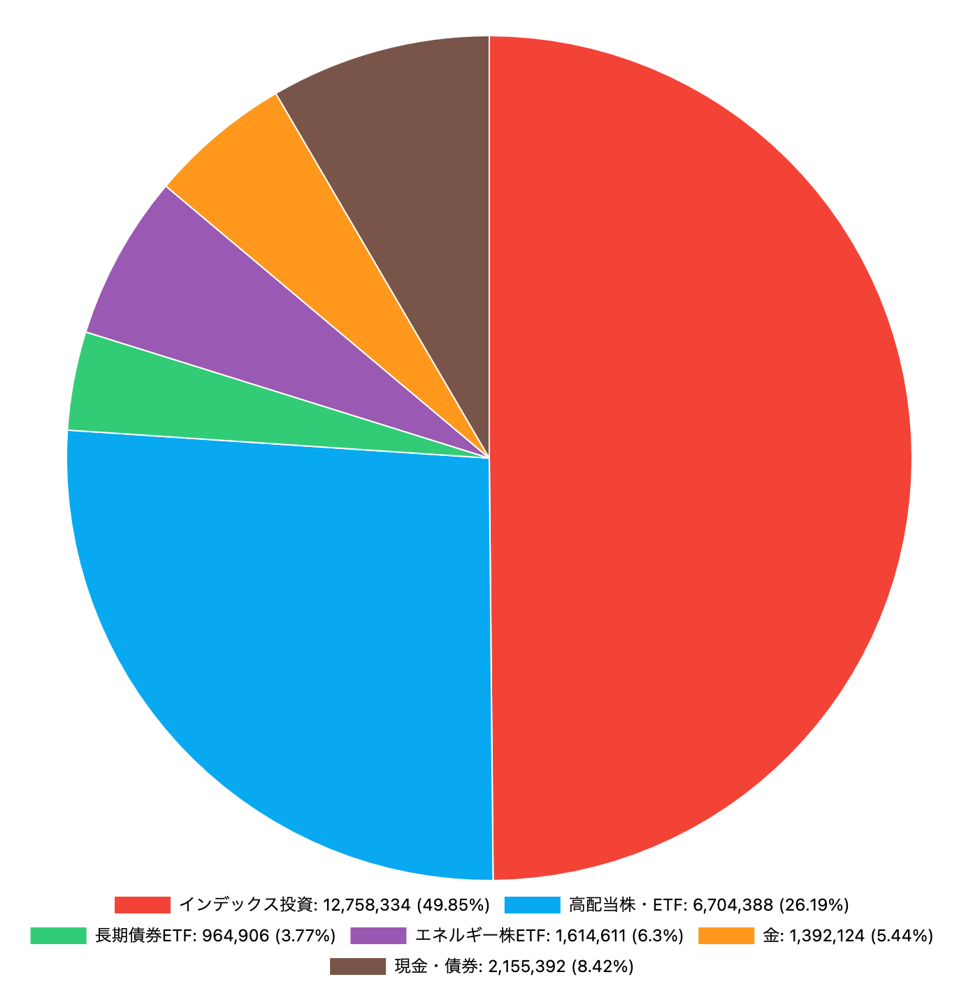 | インデックス投資 | 12,758,334 | +78,061 | 49.85 |