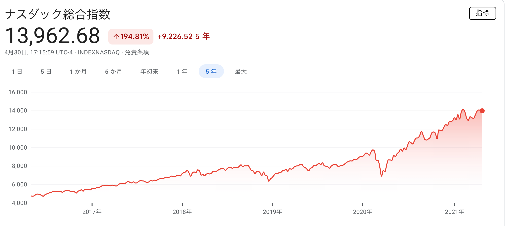 ナスダック総合指数 13,962(前月比+482)