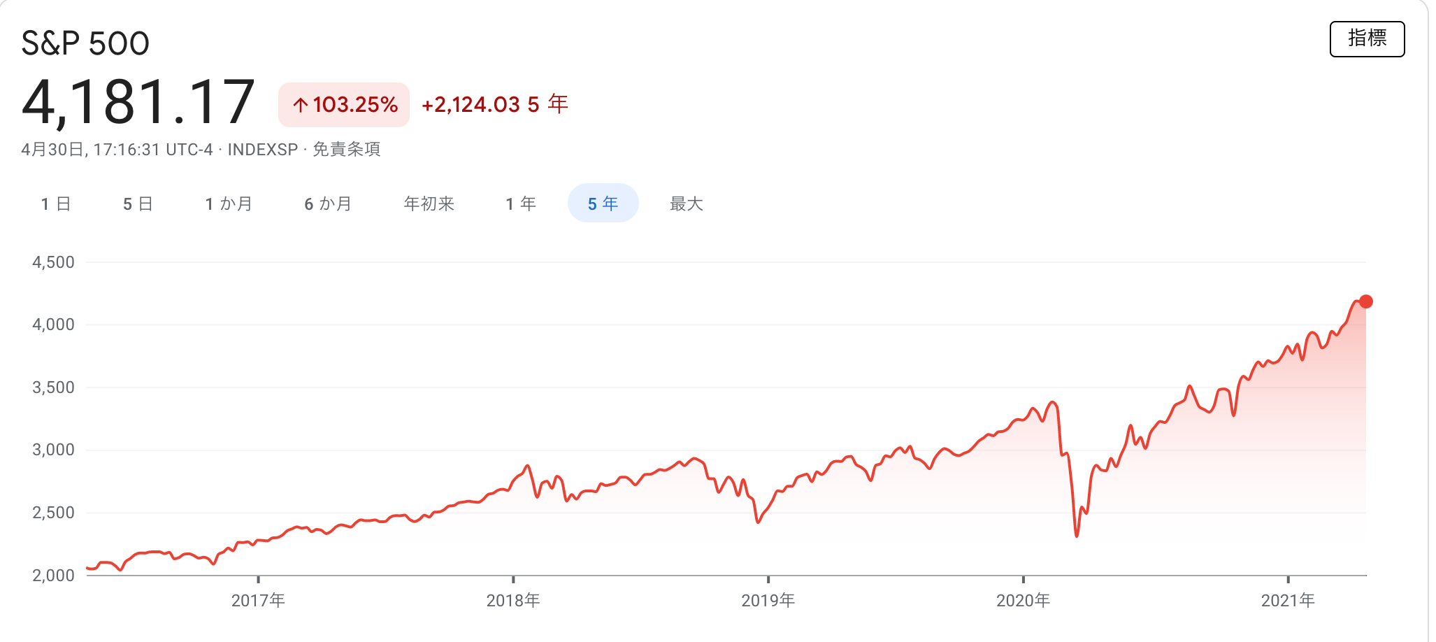 S &P500の各指数