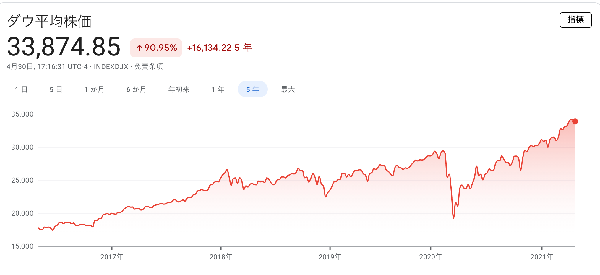 ダウ30 33,874ドル(前月比+721ドル)