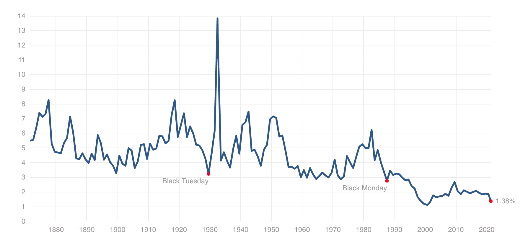 米国株の長期リターンは現在およそ2.5%低下しています。