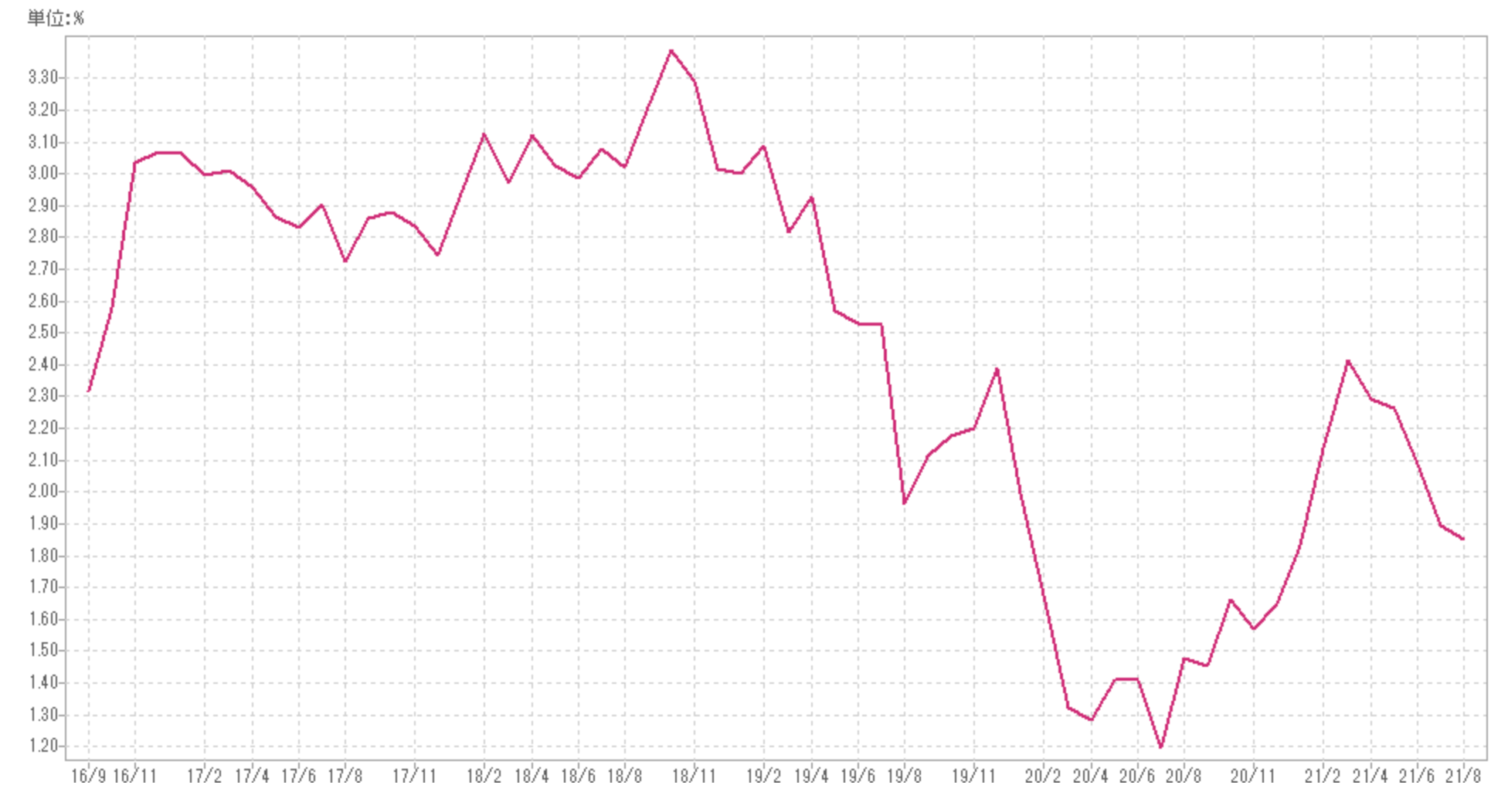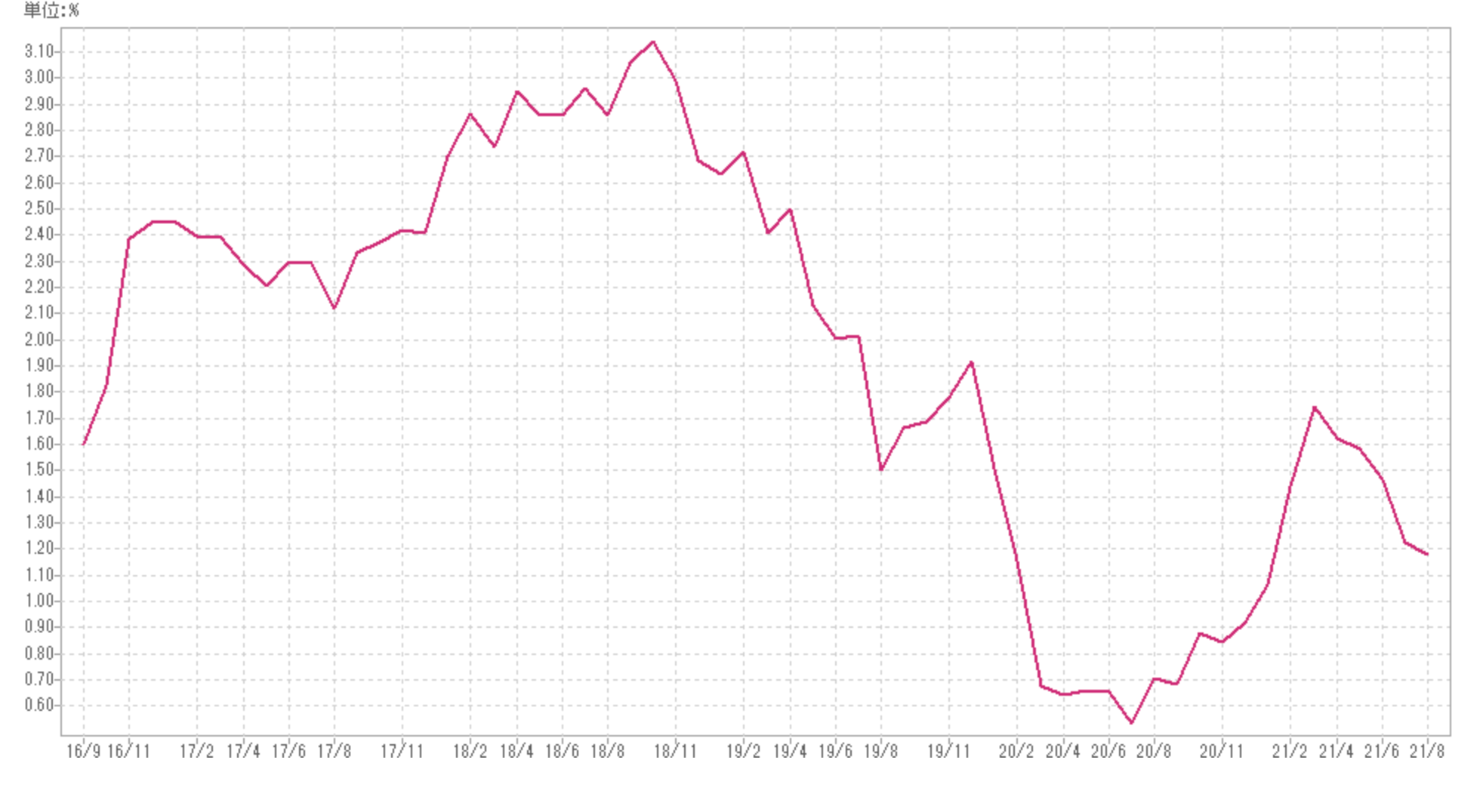 米国インフレ率のチャート