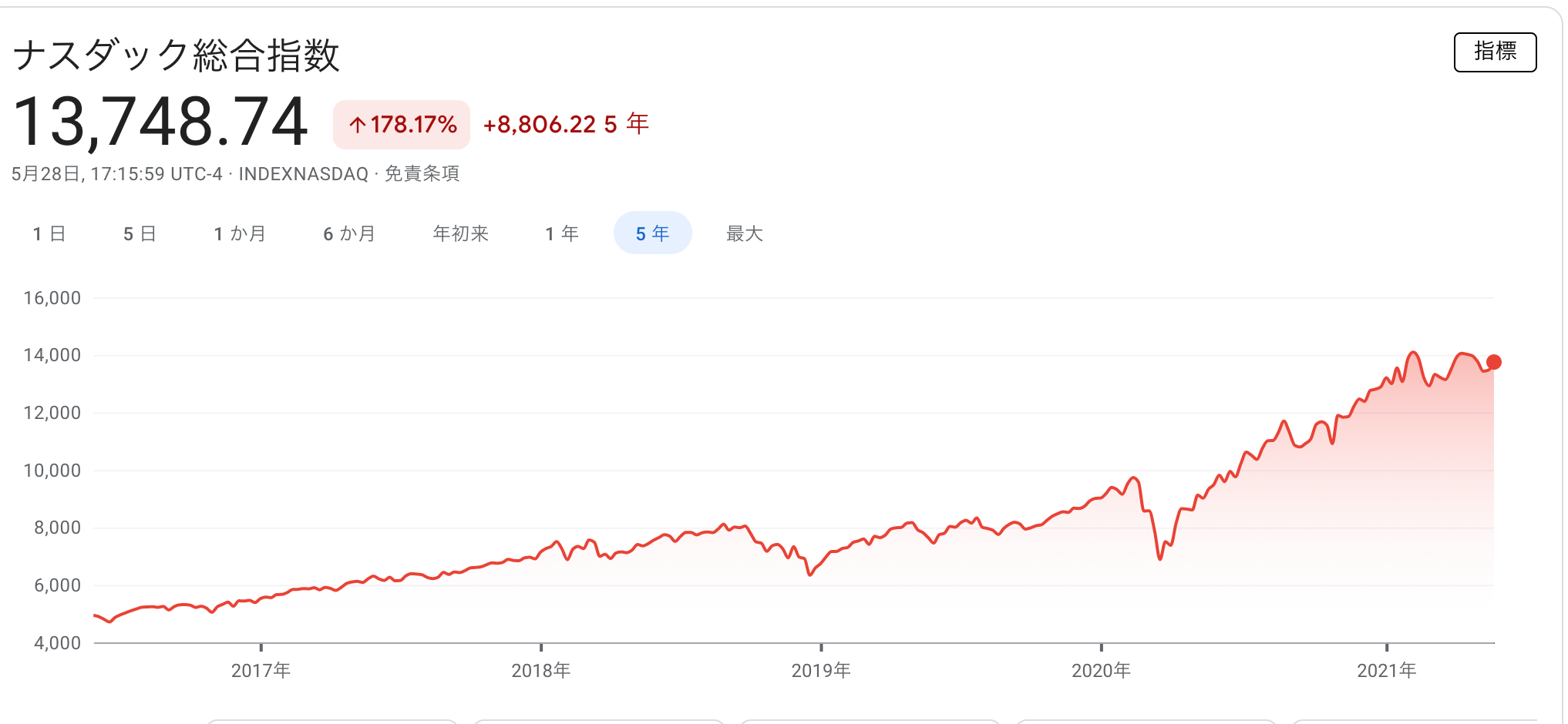 ナスダック 13,748(前月比-214)