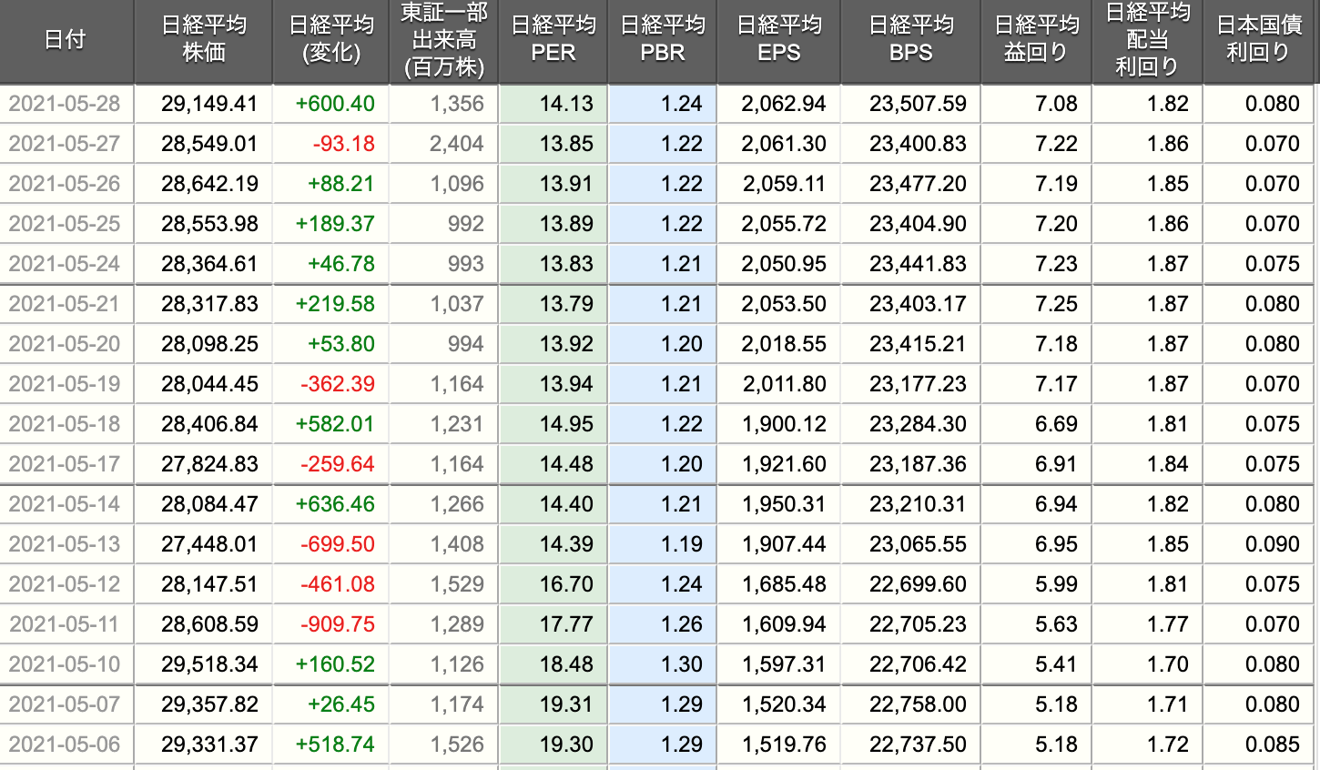 | 日経225 | 29,149 | 2,062 | 14.3 | 1.82 | 7.08 | 0.08 |