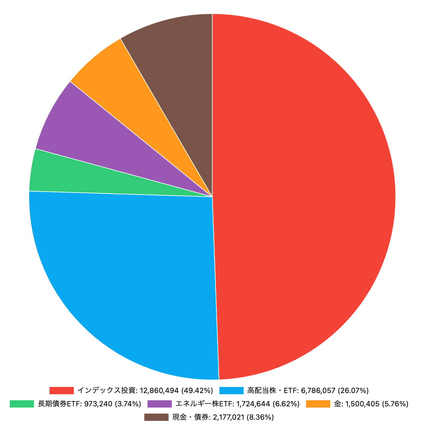 | インデックス投資 | 12,860,494 | +102,160 | 49.42 |