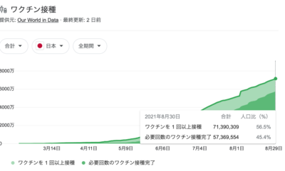 このペースでいくと10月末ぐらいまでに二回目接種率が70%超えてくるのではないかと思います。