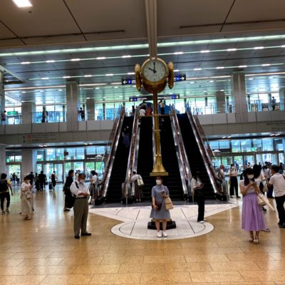 名古屋駅東口にある時計台の前のエスカレーターに乗ります。