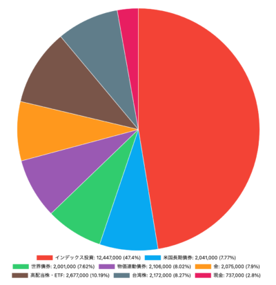 | インデックス投資 | 12,447,000 | +449,000 | 47.4 |