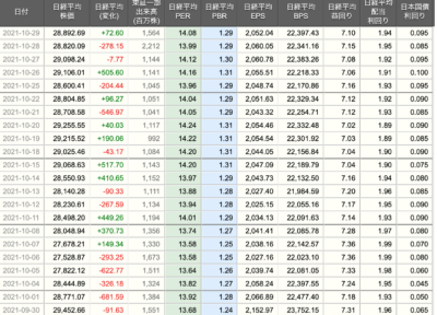 | 日経225 | 28,892 | 2,052 | 14.08 | 1.29 | 1.94 | 7.10 | 0.095 |