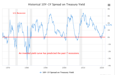 米国10年と1年金利の差