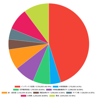 | インデックス投資 | 11,703,000 (8,982,000) | +237,000 (+221,300) | 45.14 |