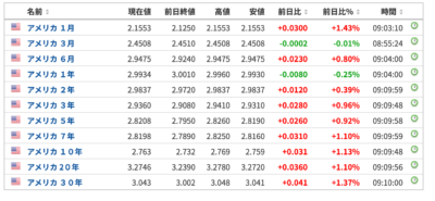 米国の長短金利