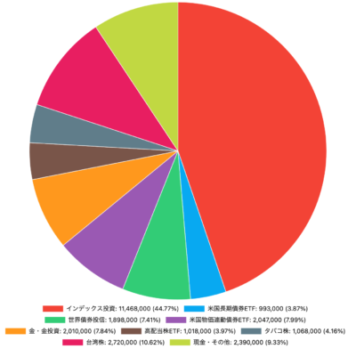 株と債券・金・現金等に分けて表示しました。