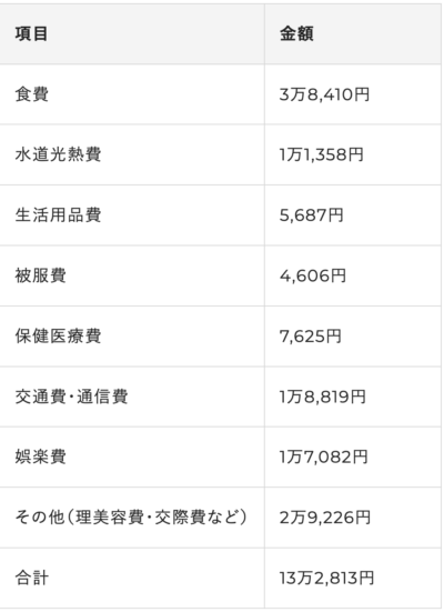 男女・年齢平均すると家賃なしでおよそ13万円となります。