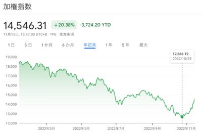 これが発表されると台湾の代表的な株価指数「加権指数」が上昇