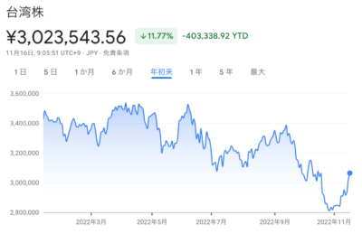 私の台湾株も評価額がマイナスへ転じていましたがプラスに戻りました。