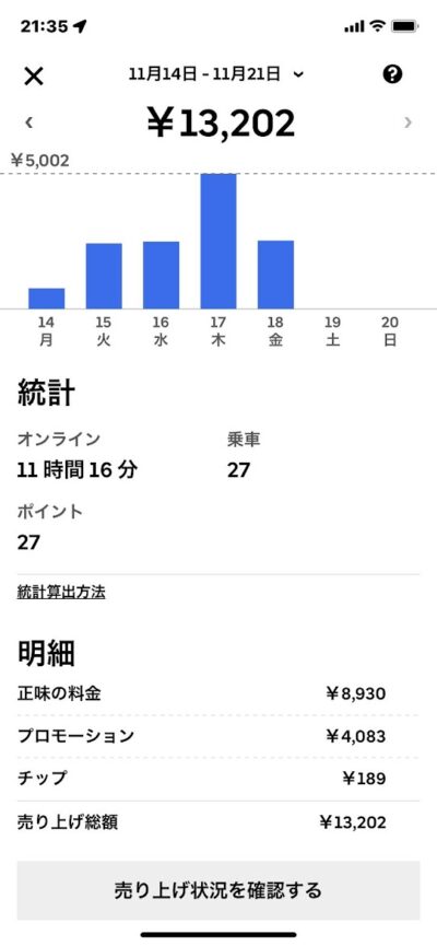 ウーバはチャリで散歩がてら昼に活動をすることによって趣味の延長のような感覚でやっています。