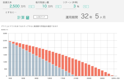 私の年齢からだと80歳ごろに資産が底をつく計算になります。