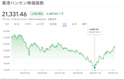 去年の3月ごろにハンセン指数が急落している記事を書きました。