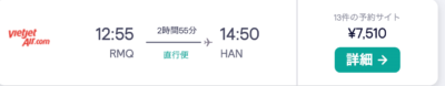 台中〜ハノイは安いですね。