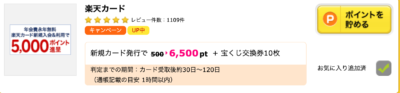 それぞれクレジットカードを作ると6,500ポイント、6,000ポイントがもらえます。