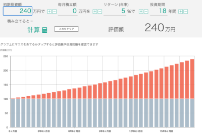100万円のお金は子供が18歳になった時に240万円になっていました。