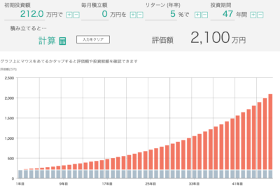 若い時に少し頑張って投資をすれば後は無理に追加資金などしないで十分貯まっていきます。