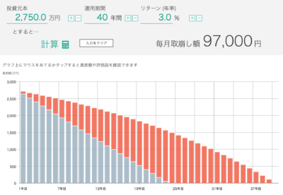 今後40年間に運用しながら取り崩すと月いくらで生活できるか計算してみました。