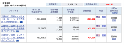 インデックス投信に投資している総額はおよそ1,331万円でNISAとiDeCoの合計が1,029万円です。残りは特定口座に302万円ほどあります。残りも新NISAへ移していく予定です。