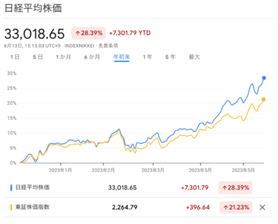 日本市場が稀に見る好調で一気に33,000円突破(6/14現在)