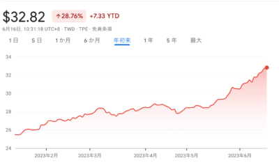 台湾株で最大の投資先のETF、0056元大高股息ETFが今年に入り右肩上がりで上昇しています。