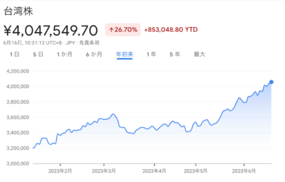 台湾株投資総額400万円突破