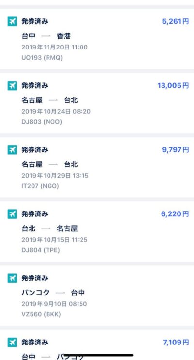 それでも台湾ー日本便は少し高い気がしますね。