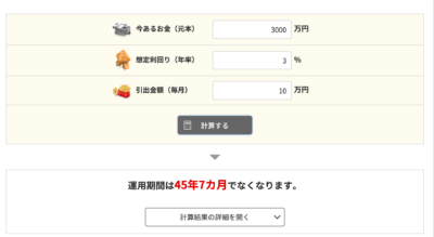 45年ほど資産が保つ予定です。