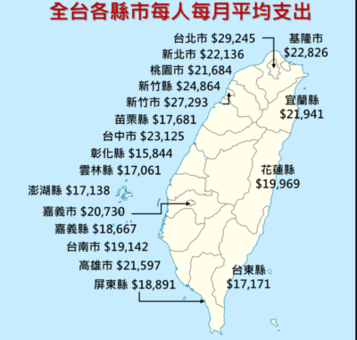 台湾人の1ヶ月の生活費