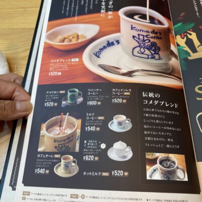 値段はコーヒー520円で名古屋都心部の値段と同じ。郊外は480円。