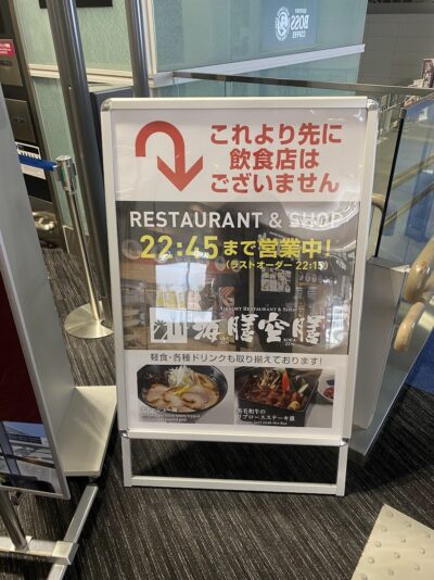 ここの時間は22:45までなのでセントレアの最終便ピーチでも全然間に合います。