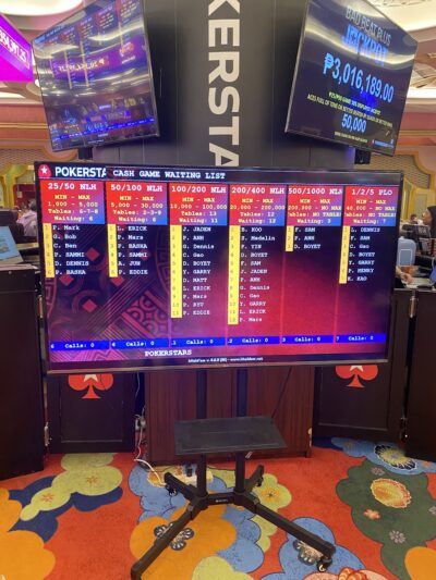 バンクロール4000BB(25/50で20万ペソ)でポーカーに挑戦しているのでバンクロールが増えれば一つ上のレート50/100へ挑戦していくつもりです。