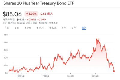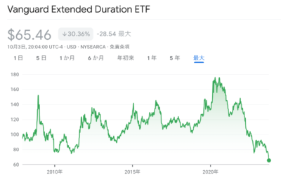 2021年から今年の10月までTLTはほぼ半値、EDVは52%の下落です。